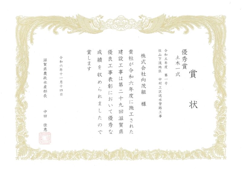 工事名 令和5年度 第1号 佐山下流地区 中村工区送水管路工事